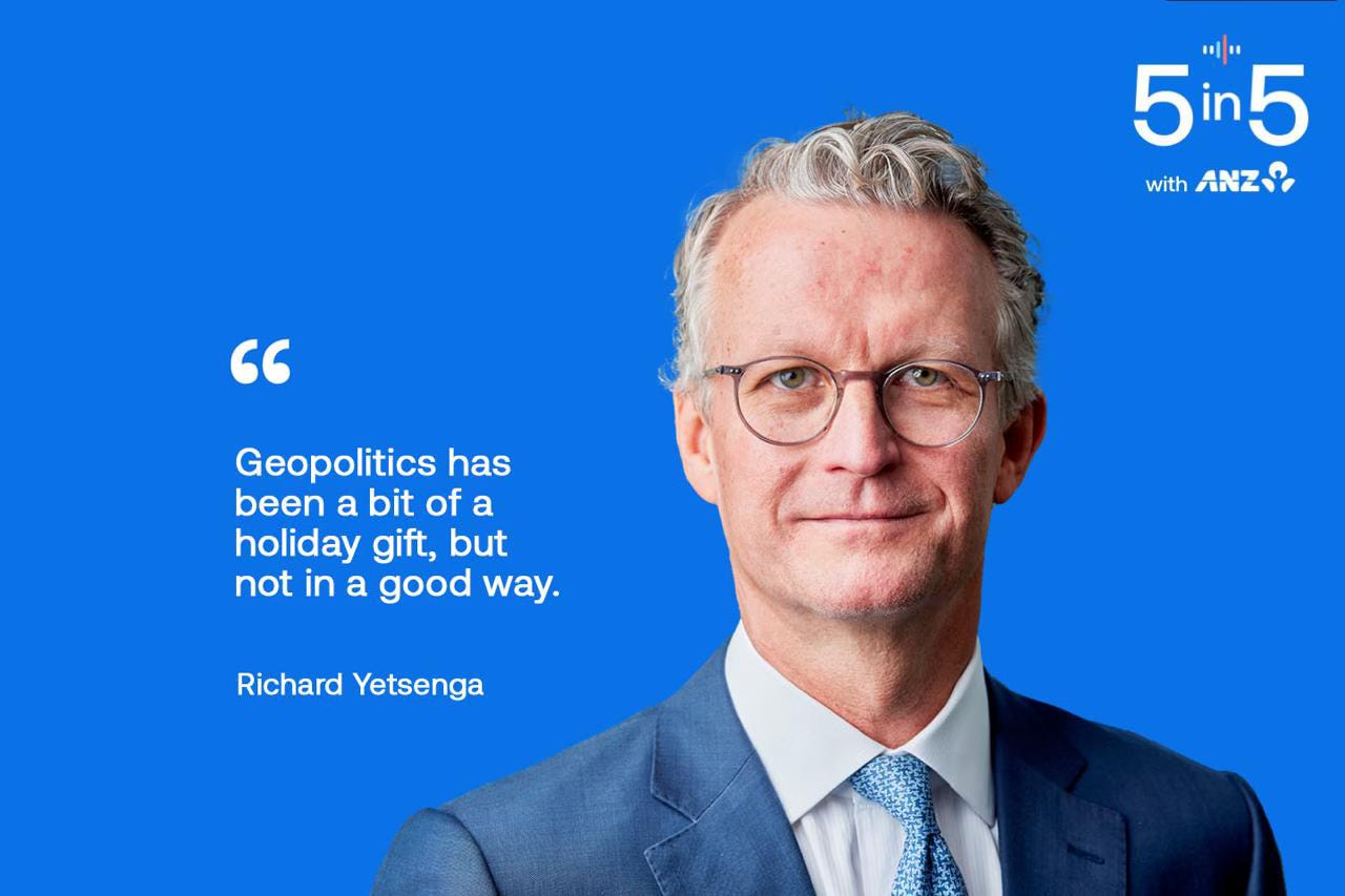 In our Deep-Dive interview, I talked with ANZ Group Chief Economist Richard Yetsenga about why financial markets are sanguine so far about the geopolitical turmoil over the last fortnight.